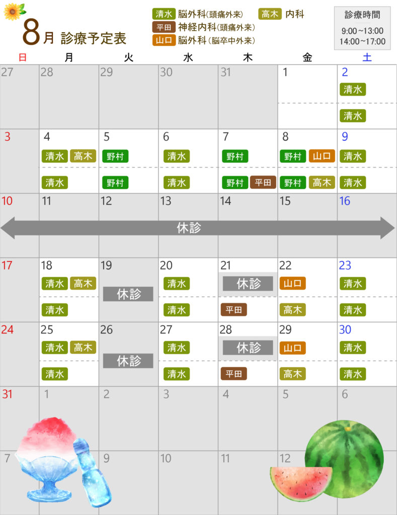 8月診療予定のお知らせ