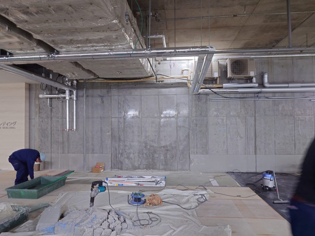 MRI搬入孔も綺麗にふさがり、チラーの囲いもできました。MRIの外壁工事もほぼ終了し、ビルの他の階やホテルへの影響もなく、一安心です。