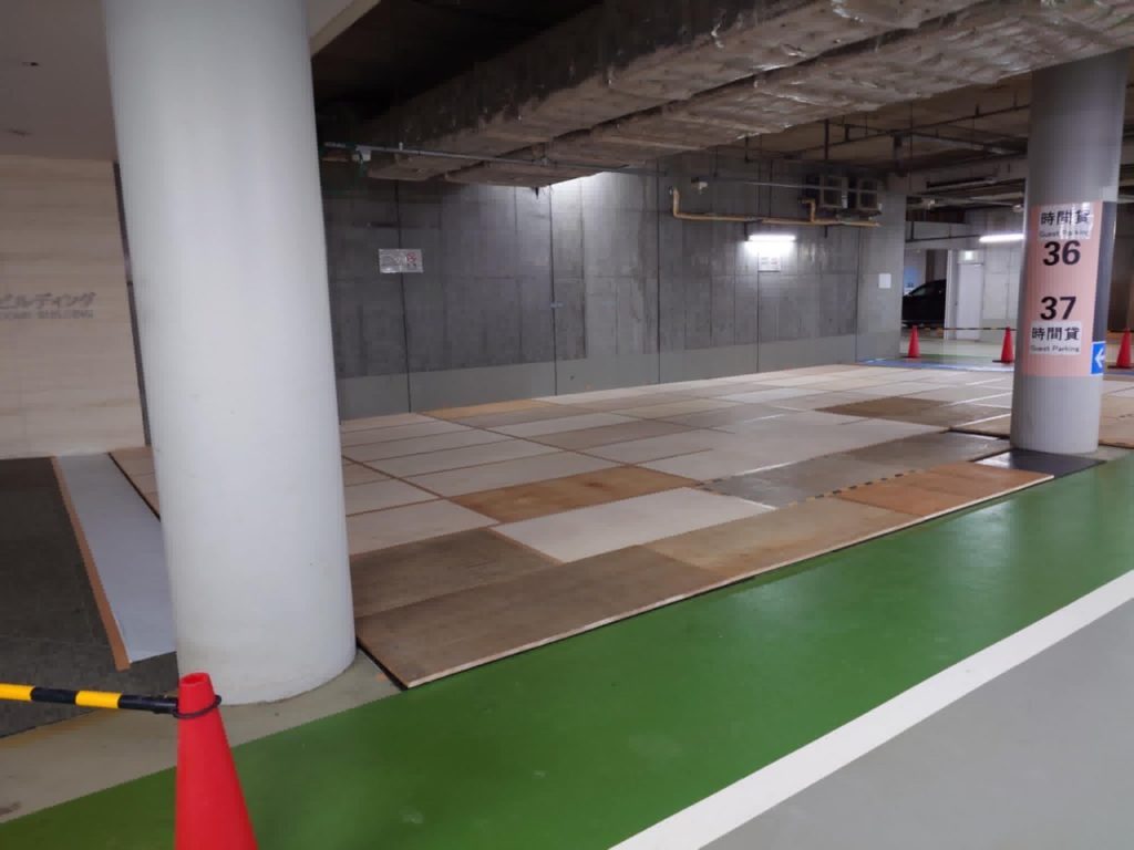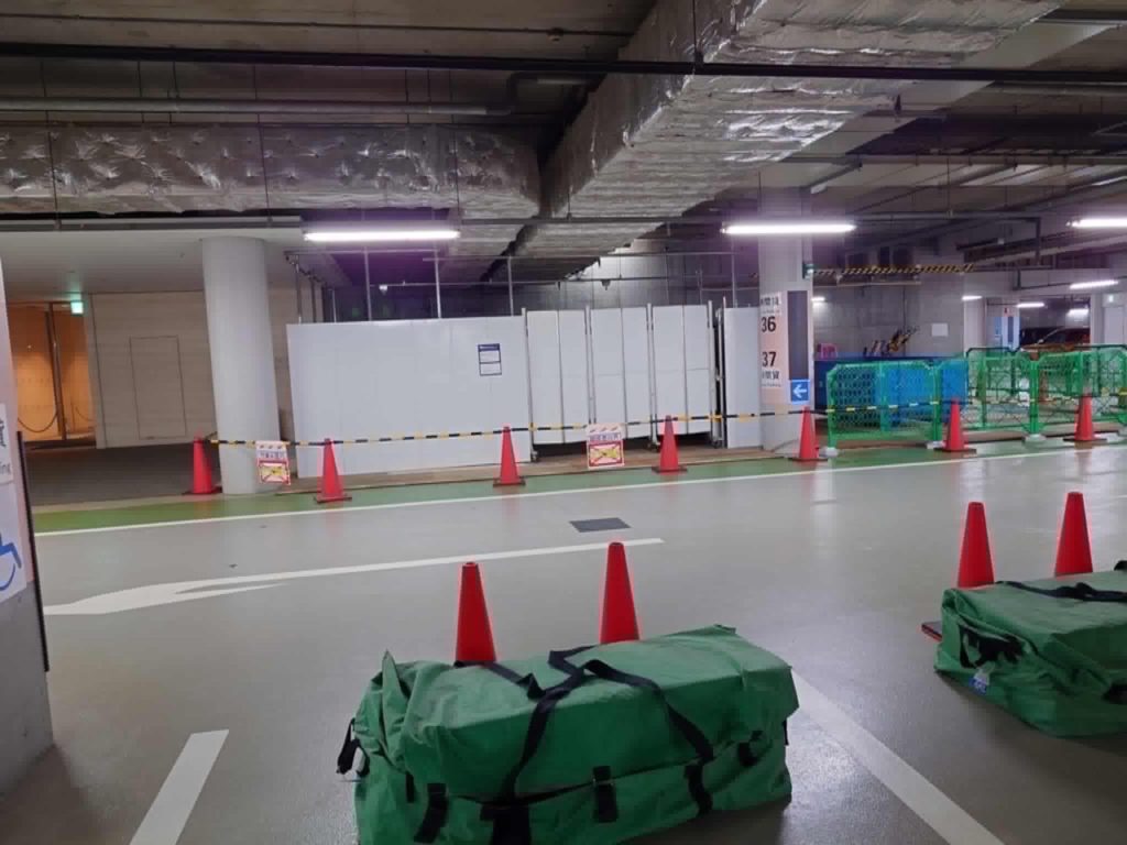 1日で、MRI搬入のためのコンラッド地下駐車場の壁突貫工事の建屋ができました。